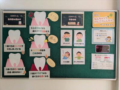 今月の保健室前掲示板は歯周病をテーマにしてみました