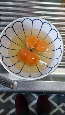 M先生が卵を割ったら可愛い双子ちゃんがうまれたそうです(笑)