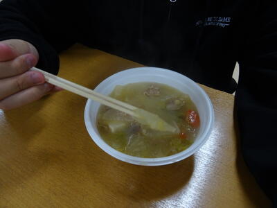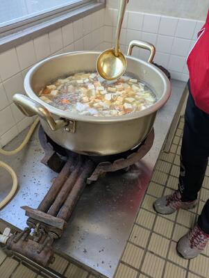 おかわりしてくれた育ち盛りの生徒たちのおかげで、鍋いっぱいの豚汁を食べきりました
