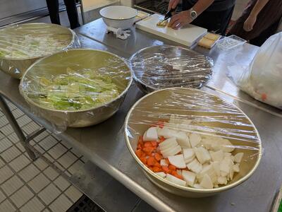 なお、今年も先生方が朝から野菜を切って準備してます