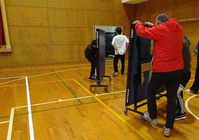 その後の体育館での準備は全員でわちゃわちゃと