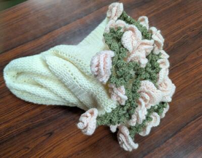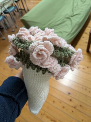 写真が上手く撮れなかったんですが、ブーケブランケットが出来上がりました