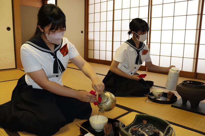 人前でのお点前は7月にあった学校茶道合同茶会以来だったので、生徒たちも緊張した面持ちでしたが練習での成果もありきれいに立てていました。