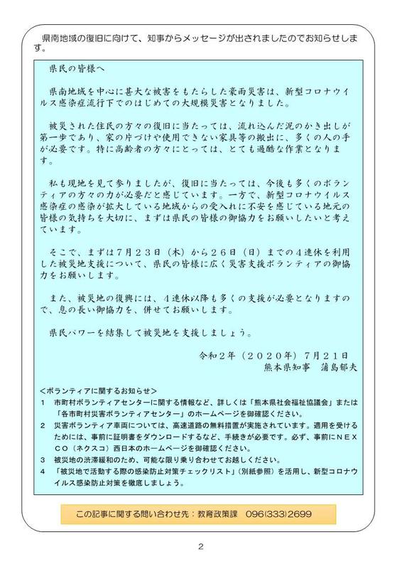 令和2年9月6日(日)本渡校舎体育館にて「牛の首地区」の天草市一斉避難訓練を予定しておりましたが、台風10号接近に伴い中止となりました。