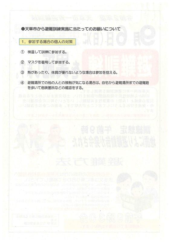 【本渡校舎】9/6(日)天草市一斉避難訓練予告