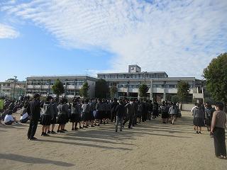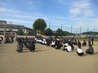 令和2年11月5日(木)「津波防災の日」に本渡校舎ではシェイクアウト訓練を実施しました。気象庁の訓練用緊急地震速報を放送し、地震発生時の安全確保行動訓練(まず低く⇒頭を守り⇒動かない)と、津波の発生を想定した避難行動訓練を行いました。