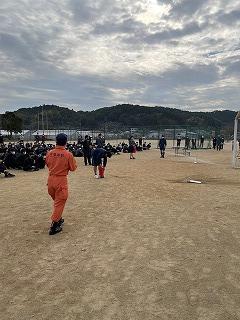 令和3年2月12日(金)本渡校舎にて、通報・消火・避難訓練が実施されました。避難後の全体会では、天草広域連合中央消防署から二名の隊員による全体講評と水消火器による消火器使用訓練が行われました。