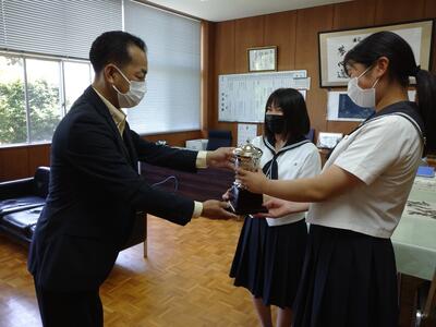 【本渡校舎】優勝トロフィー授与 天草郡市女子春季ソフトボール選手権大会