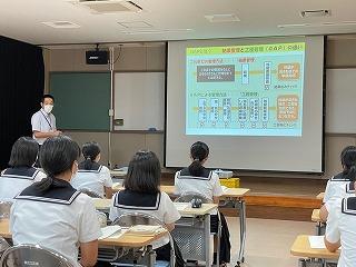 令和3年7月19日(月)、「地域との協働による高等学校教育改革推進事業」の一環として、私たち生活科学科3年の「手作り石鹸班」は、天草市五和町二江の通詞島にある「自然食品研究会」さんを訪問し、手作り石鹸に使用する天草の海水からとれる「天草にがり」についての知識を深めることができました。