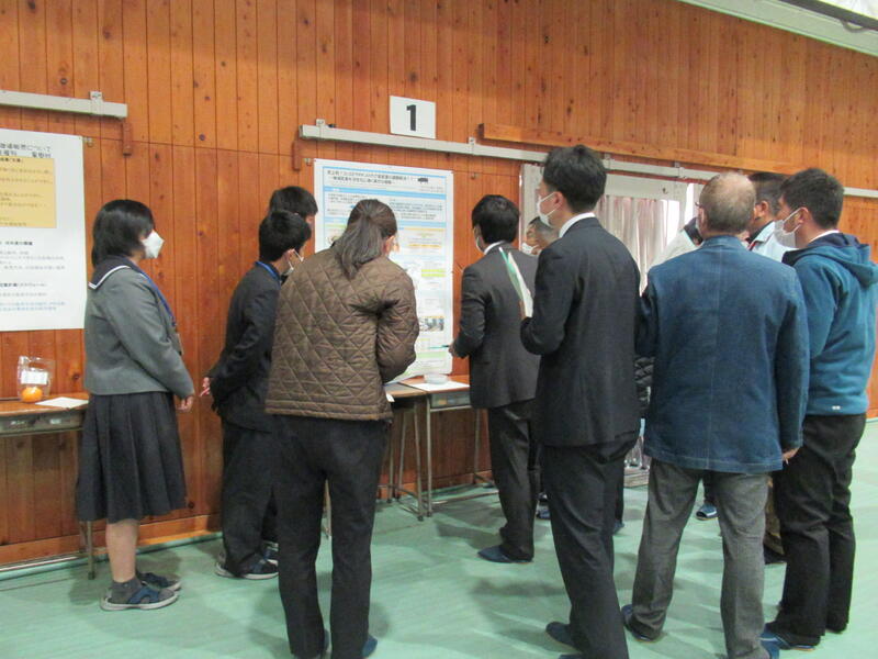 3年間の事業成果の集大成を飾る本校の研究成果発表会には、運営指導委員会をはじめコンソーシアム委員の方々、地域の連携機関の方々など多くの来校者にお越しいただきました。また、YouTubeでライブ配信を実施し、生徒たちの成長した姿を披露することができました。