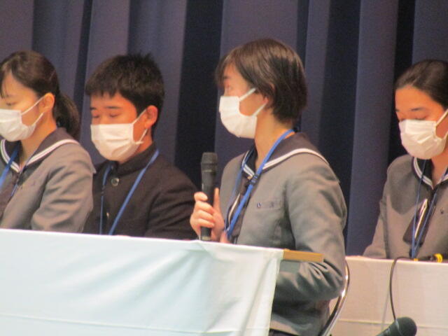 成果報告Ⅱでは、パネルディスカッションによる生徒と地域人材とのディスカッションを行いました。生徒の「未来の地域像」について発表することができ、会場の方からも意見をもらいながら天草の未来についてみんなで考えることができました。