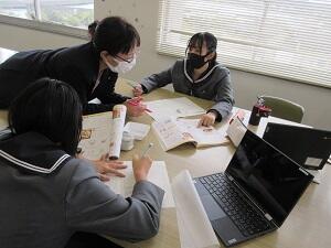 1年生「総合的な探究の時間」では、2学期は『地域の特性を探して生かす活動』を行います。さまざまな方法で検証や調査を行い、スライドでまとめ発表します。