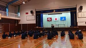 校長講話の中で中村校長先生は「自分の進む道は、自分の責任で、自分で選ぶことが重要です。そして、自分で選んだことならば素晴らしい人生になると思うので頑張ってください。」とエールを送られました。