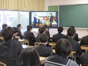 を行いました。高校3年間を振り返る動画上映、学年主任の挨拶などがありました。
