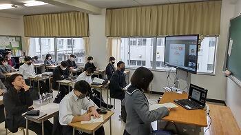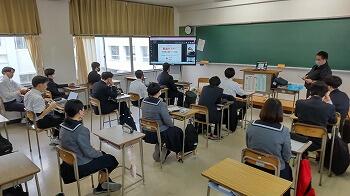 本日、6限目に本校の3年生を対象にオンラインで献血セミナーを行ないました。講師は熊本県赤十字献血センターの先生にお願いし、輸血や献血の現状や社会的な意義について講義していただきました。