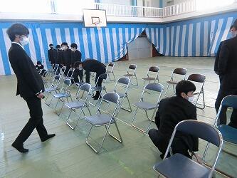 当日、在校生は式には参加できないので日々お世話なってきた先輩を送り出すため、心を込めて会場設営を行ないました。