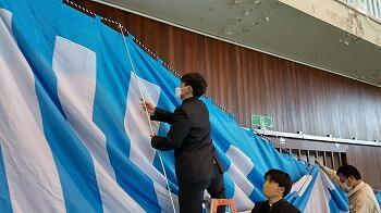 本日は、卒業式終了後マリン校舎で行なわれる「卒業を祝う会」の会場設営を行ないました。
