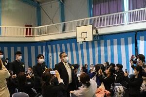 本校体育館で転退任式を行いました。5名の先生がご退職、4名の先生が転任となりました。先生方から在校生そして卒業生へお言葉をいただき、最後は、アーチを作って先生方を見送りました。