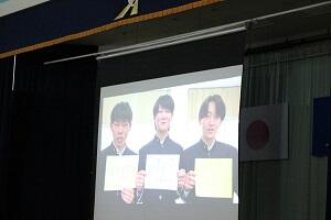 終業式に先立って、表彰式が行なわれ3学期の学術優秀者や各種コンクールの優秀者が表彰を受けました。