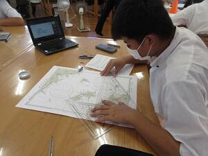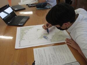 「航海・計器」:予定航路を海図に記入して航海計画を立てる