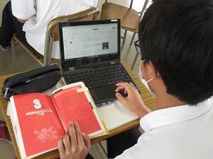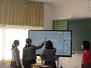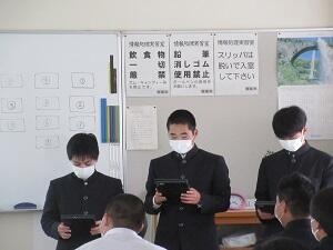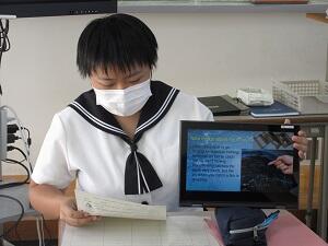 「コミュニケーション英語Ⅰ」:自分の学校のよいところを不定詞を用いて発表し、相手の発表の要点をメモする