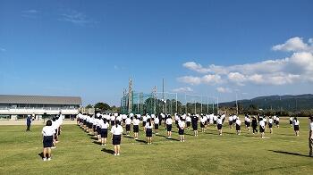 本日は、行進やラジオ体操の練習が行なわれ、団長を中心に各学年心を1つに練習を行なっていました。