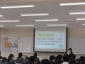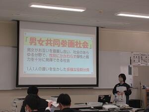 生徒は、「性別による制限は、嫌だ。」、「固定概念がなくなってほしい」、「自分の人生だから、自分で決めたい」と話していました。だれもが自分の個性や能力を発揮し、いきいきと生活していける社会を実現していきましょう。
