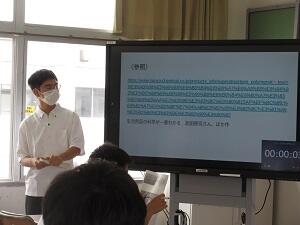 ②質疑応答も兼ねて1人5分間で発表しました。最後にformsで相互評価を行いました。