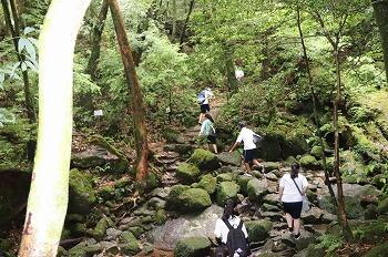 昨日の午前中は港周辺を散策した後、午後からは白谷雲水峡に行きました。この白谷雲水峡はジブリアニメの「もののけ姫」のモデルとなったところで、大きな屋久杉や大量の水苔で覆われており、生徒達は自然豊かな森に感動している様子でした(^∇^)。