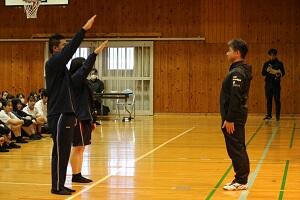 本渡校舎体育館を会場に令和5年度狩猟者PR事業(高校生への鳥獣被害対策講座)が行われ、両校舎の2年生および本渡校舎生物生産科が参加しました。マリン校舎はオンラインで視聴しました。熊本県の野生鳥獣による農作物への被害は全国的にも高い水準にあり、講座を通して農林業被害防止の意識の高揚を図り地域課題への理解を深めました。
