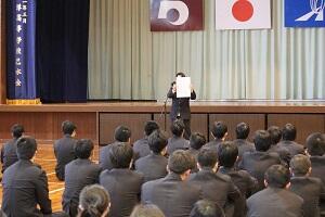 新役員を代表し、生徒会長が「これからマリン校舎を頑張って引っ張っていきたいと思いますので、皆さんぜひ御協力宜しくお願いします。」とあいさつしました。