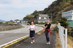 開会式では、両校舎の代表生徒が「それぞれの目標に向かって頑張りたい。日本一距離の離れた校舎制の学校だが、今日の走りで絆を結びつけたい」と力強く選手宣誓を行いました。気温が上がり汗だくなったり、マリン校舎に近づくにつれて強い風に吹かれるなか、沿道でたくさんの応援を受け仲間たちと励まし合い一人一人が自分の目標に向かってチャレンジしました。