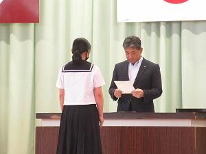 令和5年度1学期終業式を行いました。終業式を前に行われた表彰式では11名が表彰を受けました。