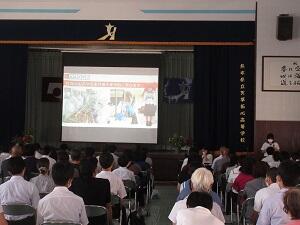 | 真剣なまなざしで講演会を聞いています |