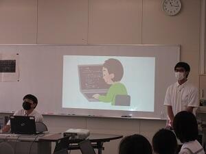 高度な内容でしたが、アニメなどのエンタメ事業やAIを活用した地域創生、船舶用レーダー、スマート水産業、ロボットを活用した弁当作りなどそれぞれの学科・コースの特色に応じた内容で、映像や実物も見せていただき、普段の学習とは違う視点で学びを深めました。また日々進化し続けている最先端の取り組みについても知ることができました。