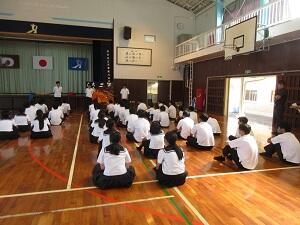 校長講話の中で鬼塚校長先生は「皆さんには一人一人違う強みがあると思います。その強みを自分で気づいてください。そして、目標を持ちその目標を達成できるように努力して行ってください。」と述べられました。