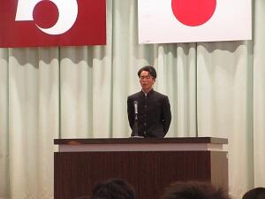 その後、赴任された先生を代表して鬼塚校長先生が「皆様の学びそして成長のお手伝いが出来る様頑張って行きますので皆さんもぜひ我々に積極的に話しかけてください。」と述べられていました。