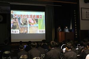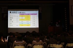 3年生各学科・コースの代表5組が地元の課題や地域振興や各学科の特色を生かした研究成果や今後の展望について発表しました。3年生は今後も探求心を持ち物事に取り組み、1・2年生は自分たちの研究に活かしていきましょう。