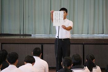 最後に代表生徒が「卒業後の進路に向け、各学年の立場で思いを新たにすることができました」とお礼の言葉を述べました。