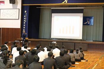 最後に代表生徒が「写真で事業の前後が分かり、知らなかったことを知る良い機会となった。今日の講演を活かして4月から学習する『課題研究』では、地域課題解決に取り組んでいきたい」とお礼の言葉を述べました。
