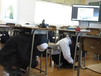 | 生徒たちは素早く身を守る行動をとっていました!! |