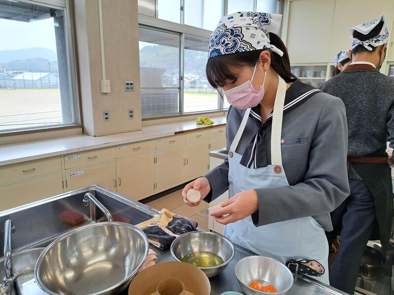 3年食品科学科の生徒がフードデザインの授業で炊き込みご飯とイサキの塩焼き・味噌汁を作りました。