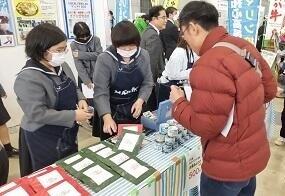 本渡校舎(普通科)ポスター発表の様子 マリン校舎(食品系)の実習製品販売の様子