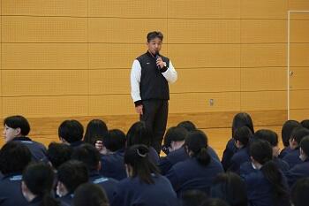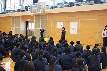 最後に代表生徒が「写真で事業の前後が分かり、知らなかったことを知る良い機会となった。今日の講演を活かして4月から学習する『課題研究』では、地域課題解決に取り組んでいきたい」とお礼の言葉を述べました。