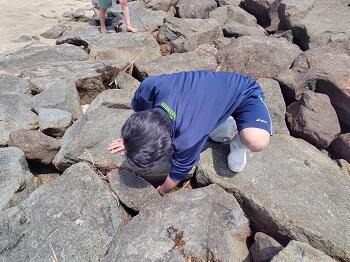 交流会では、マリン校舎近くの江理海岸で磯採取を行い、地元の海で見られる生物を実際に観察。さらに、苓北町周辺で確認された海洋生物の情報交換も行いました。