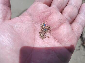 砂に交じるマイクロプラスチック 清掃後に記念撮影