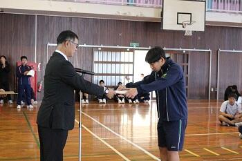 はじめに部活動のキャプテンが先日の高校総体の結果報告を行いました。3年生の思いを引き継ぎ、1・2年生がさらに部活動を盛り上げていってくれることでしょう。
