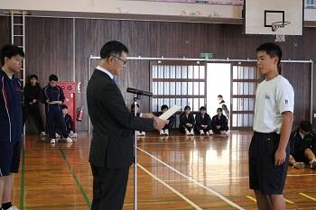 水村校長から生徒会長、副会長、書記、会計、各種委員長の計15名に任命証が授与されました。新たな執行部メンバーが中心となり学校を引っ張っていってくれることでしょう。
