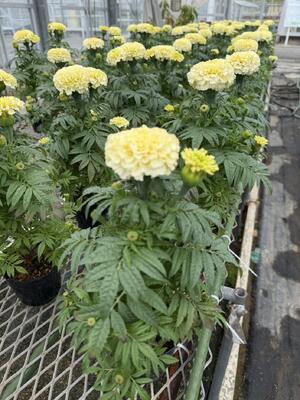 珍しい白いマリーゴールドが絶賛咲き乱れております♪