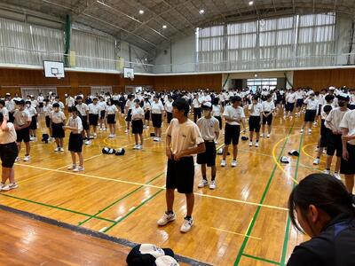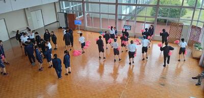急遽体育館で全校ダンスの練習をしました!